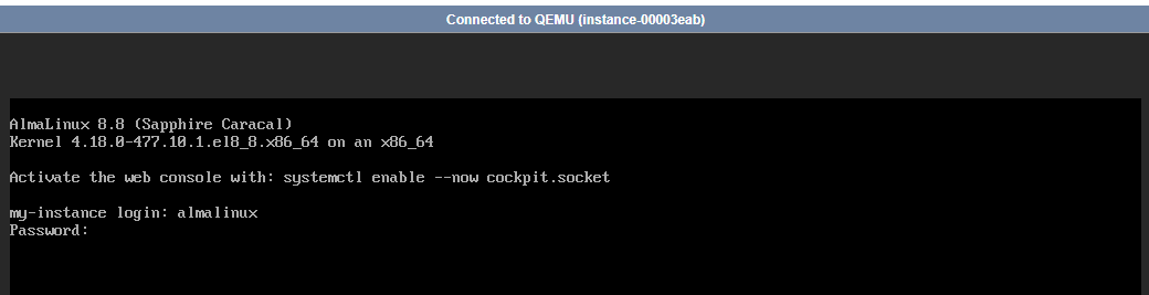 Each cloud instance has a graphical console in the xneelo Cloud dashboard. The console provides direct access to the instance terminal, where you can run commands, troubleshoot, or recover access when SSH is unavailable.