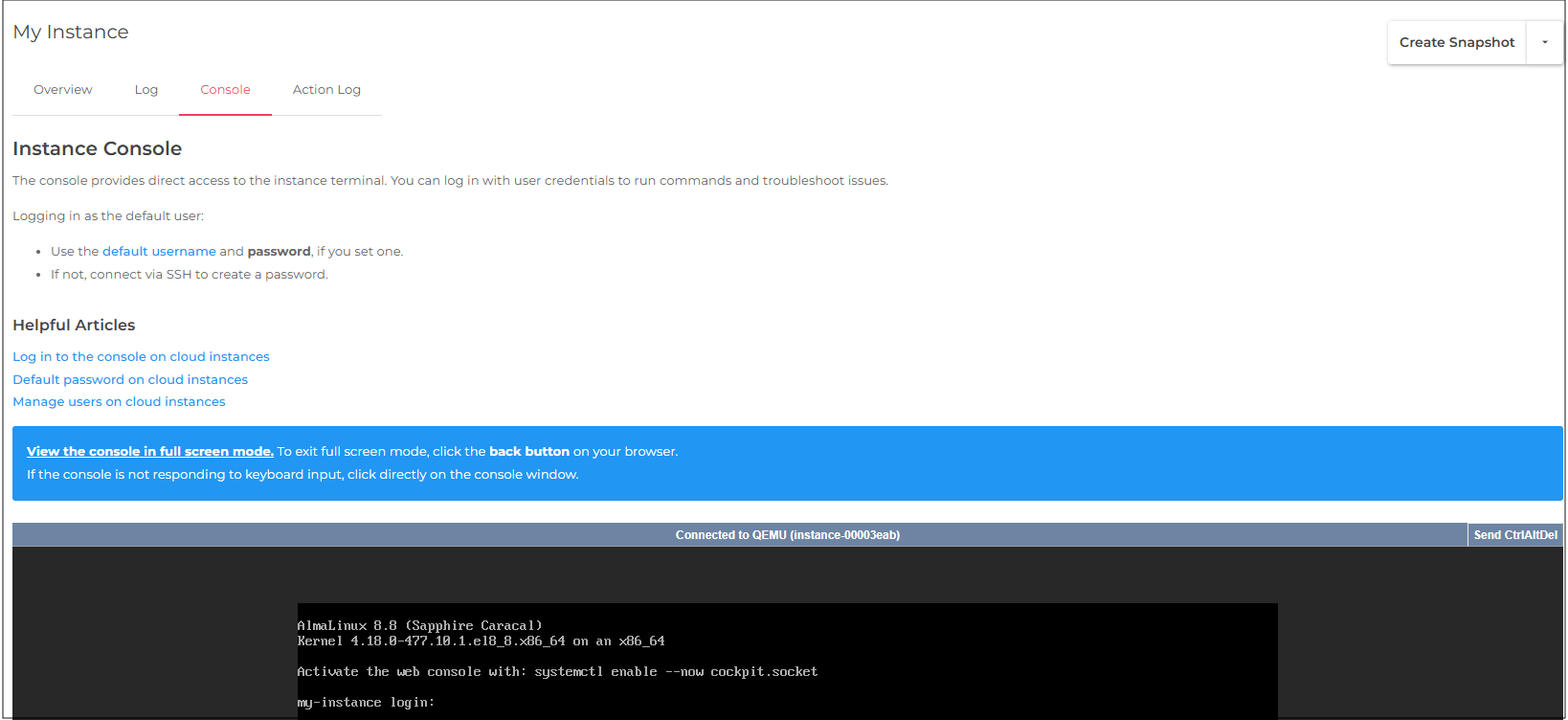 Log in to the console on cloud instances