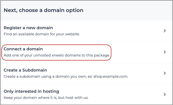 When you’re ready to add a hosting package to a domain listed on your account, you can connect your domain to a suitable hosting package.