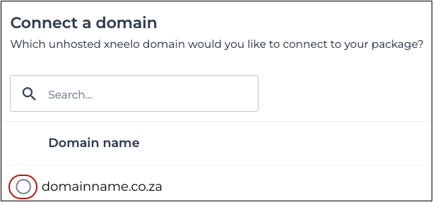 7Select the domain you would like to connect to a hosting package and click Continue.