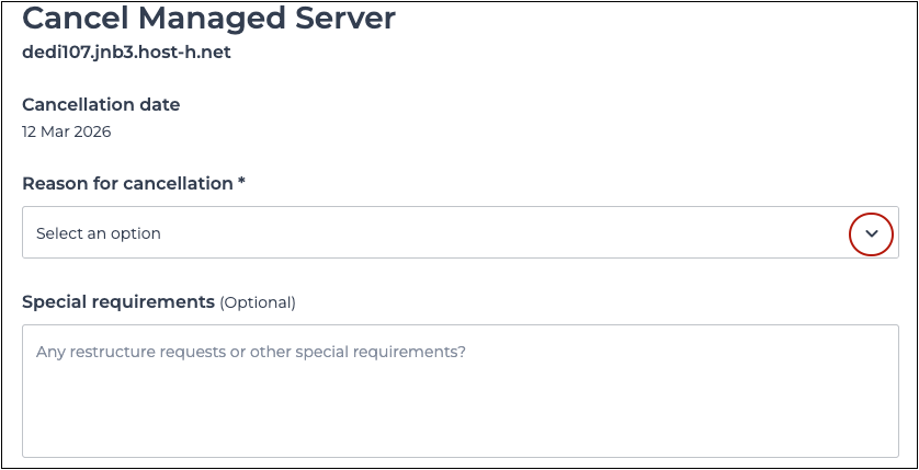 5Select a reason for cancellation from the drop-down menu and if you have any special requirements, please provide those details in the field provided.