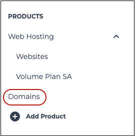 - Under Products in the side menu, select Domains.