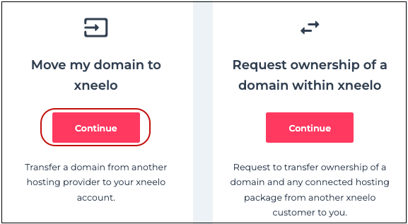 Click Continue in the Move my domain to xneelo card.