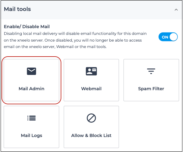 5The Mail Admin page displays the mailboxes, aliases and catch-all feature at the top of the page.