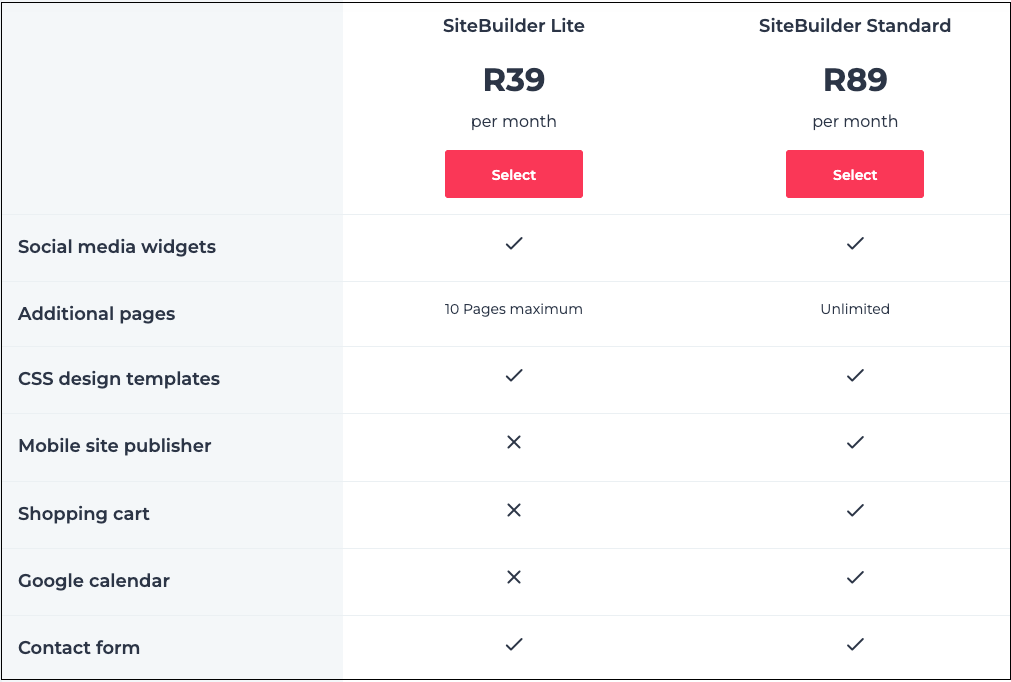 The main difference between the two SiteBuilder packages is that SiteBuilder Lite limits the features available to the user.