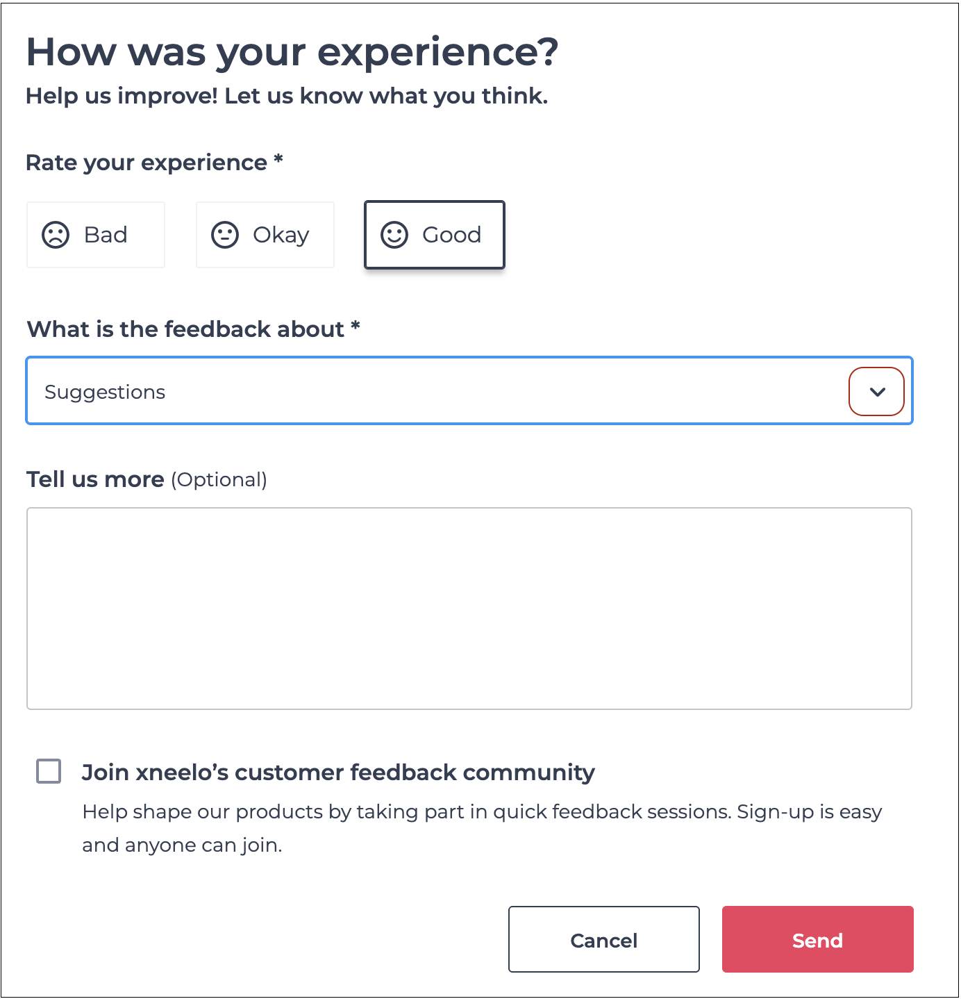 3Rate your experience and select an option from the drop-down menu to indicate what your feedback relates to.