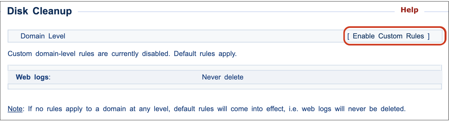 - If no rules have been specified for a domain at any level, the default setting is for web logs to never be deleted.
